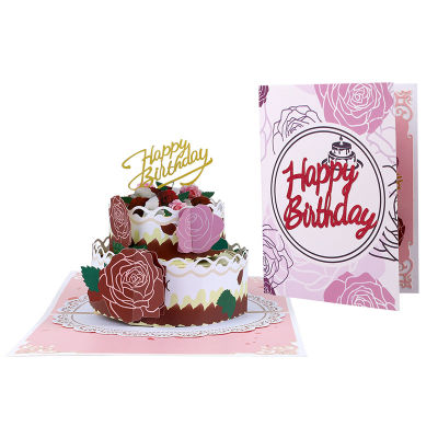 Rosy Layers 3D Birthday Cake Pop Up Card