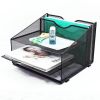 3 Letter Trays and 2 Vertical Sections Black Metal Desk Organizer