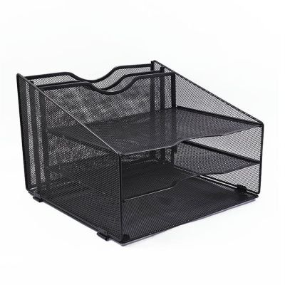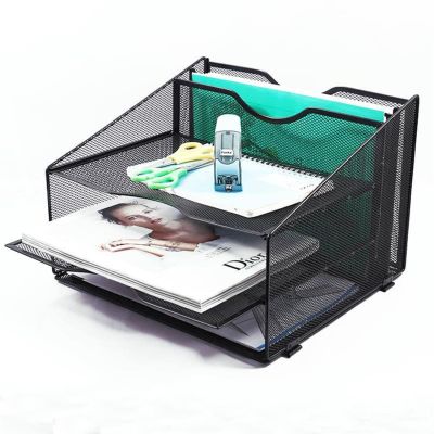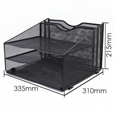 3 Letter Trays and 2 Vertical Sections Desk Metal Desk Organizer. This Metal Desk Organizer combines three spacious letter trays with two vertical sections to keep documents, folders, notebooks, and accessories neatly arranged. Built from durable, lightweight metal mesh reinforced with a sturdy steel frame, it offers excellent strength and long service life. The hollowed mesh design features small, dense openings that resist dust buildup and make cleaning quick and effortless. Its multi‑section layout provides generous storage capacity while allowing fast, easy access to frequently used items. Measuring 33.5x31x24cm to save space and reduce clutter, it fits perfectly on office desks, home workstations, and study areas. Easy to assemble and highly functional, this organizer delivers a clean, efficient, and professional workspace.