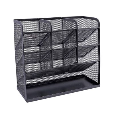 4 Tier Vertical Black Detachable Metal Mesh Organizer 27 x 8 x 20.6cm. This 4‑Tier Vertical Black Detachable Metal Mesh Organizer provides an efficient and space‑saving solution for storing stationery and daily office essentials. Built from durable, lightweight metal mesh reinforced with a sturdy steel frame, it offers excellent strength and long service life. The hollow‑out mesh design features small, dense openings that resist dust buildup and make cleaning quick and effortless. With a total of 10 compartments, it keeps items neatly separated and easy to access, helping maintain a tidy and productive workspace. Measuring 27 x 8 x 20.6cm, it fits perfectly on desks, shelves, and compact work areas without occupying unnecessary space. Easy to assemble and designed for fast access, this organizer is ideal for offices, home workstations, and study environments.