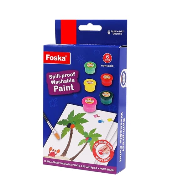 Pack of 6 Colors Spill-proof Washable Paints.This Pack of 6 Spill‑Proof Washable Paints is the perfect choice for encouraging creativity in children of all ages, whether at home, in classrooms, or during parties and craft sessions. Each paint bottle features a no‑drip, spill‑proof design that keeps workspaces clean and mess‑free. The washable formula makes cleanup effortless, removing easily from skin, fabrics, and most surfaces. Made with safe, non‑toxic materials, these paints offer peace of mind for parents and teachers. The quick‑dry formula saves time and prevents smudging, while the bright colours work beautifully on most paper types. A convenient, child‑friendly set that combines vibrant results with hassle‑free use.